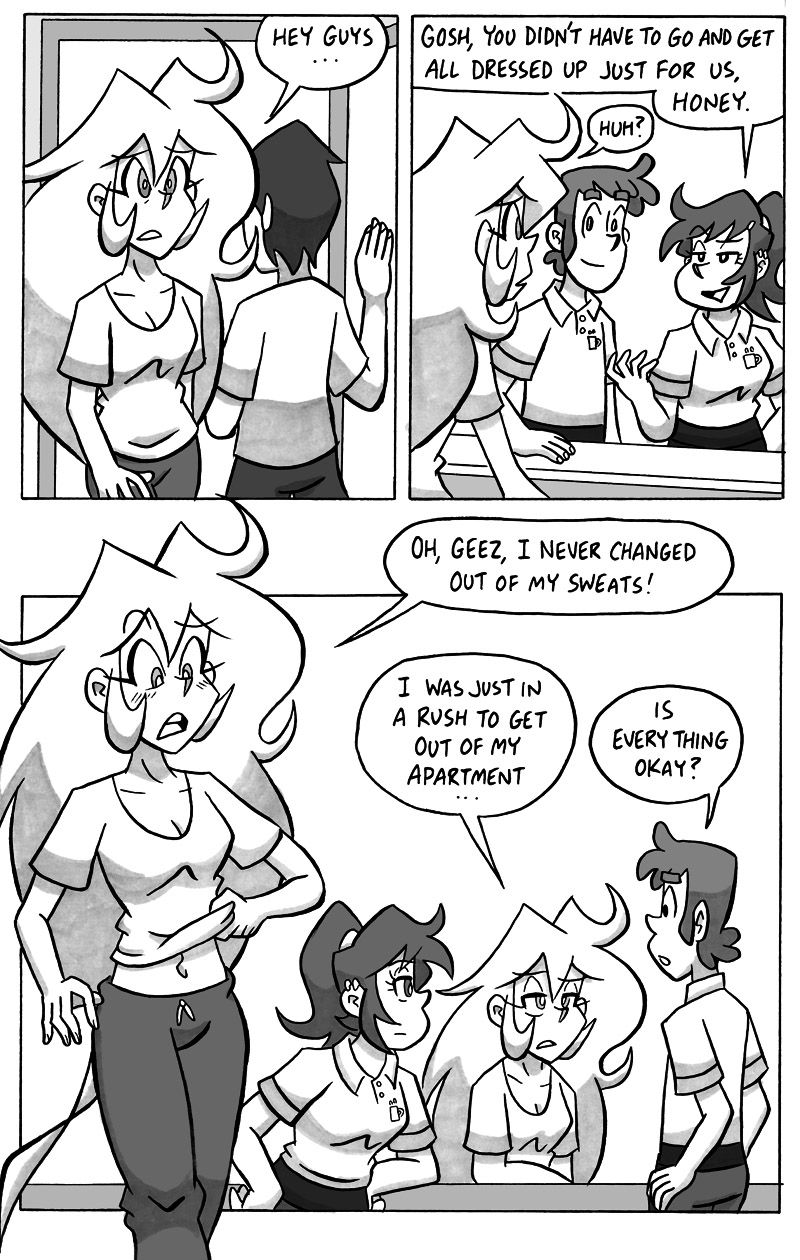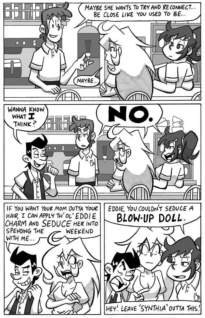 Three more stories from the ongoing webcomic are now available in print form! Rudy takes the spotlight in a chapter that finally sees him going on a date with Honey! Then, Honey deals with a sudden visit with her mom, can the two of them work out their issues? Finally, Honey's latest date turns out to be another dud, and she decides to make a drastic change to turn her luck around.